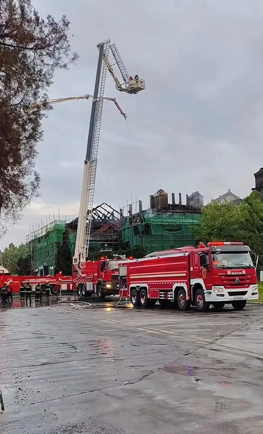 关于工程进度问题,该负责人说,他们在四月中下旬就完成了礼堂内部的吊顶修复、门窗、墙面刷漆,火灾前主要在楼顶铺瓦。该负责人称,公司目前正在配合开封消防和公安机关调查起火原因,他们并非大礼堂的唯一施工单位,同时还有一个安防公司进场干活。