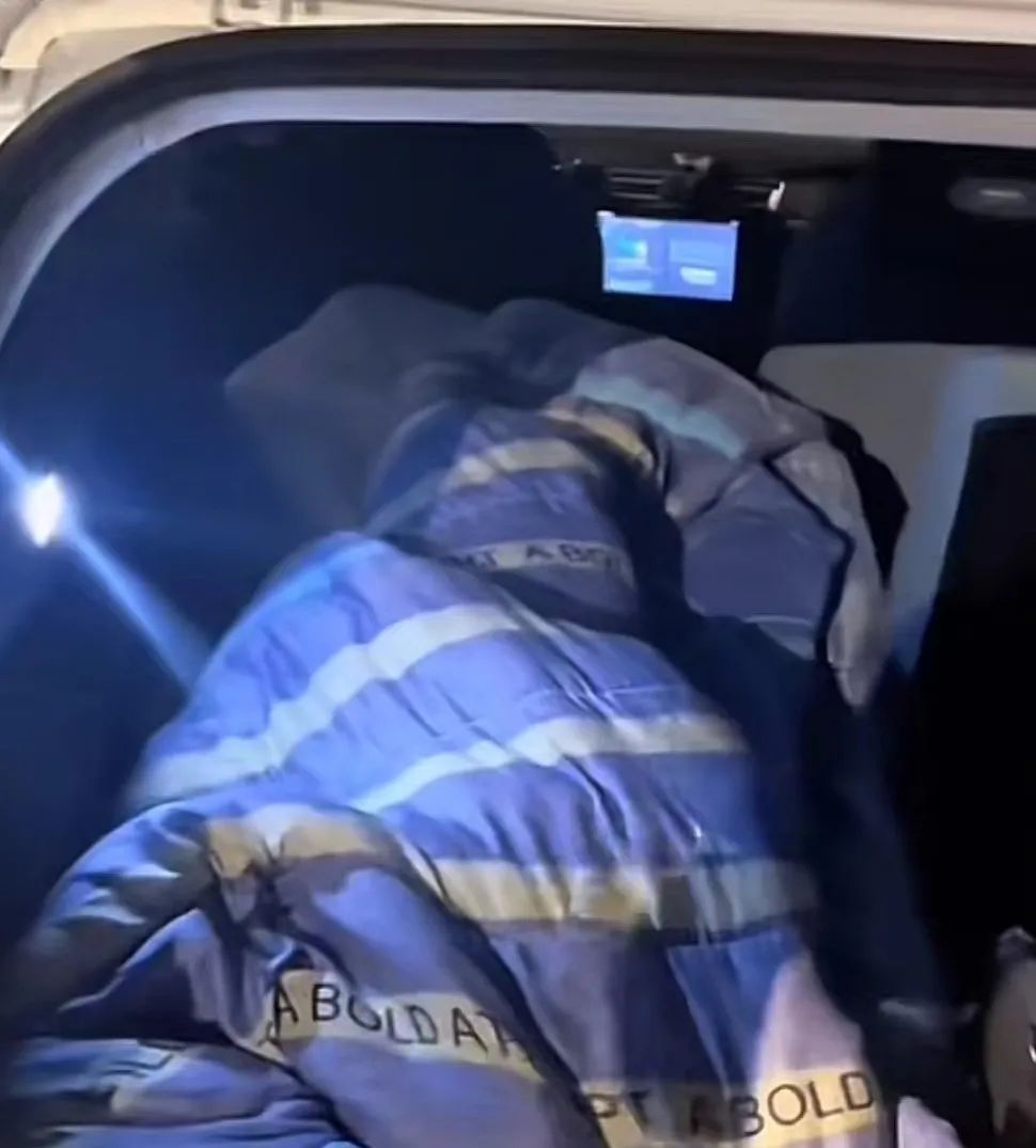 他一直生活在这个空间里,已经适应,自然闻不出什么味道。第一次进入车内的乘客,能立马嗅到车里的五味杂陈。他在某视频平台发布过自己睡在车里的场景,后备箱里的被子等生活用品一览无余,有网友评论说:“怪不得打网约车总是那么臭!原因在这里。”
