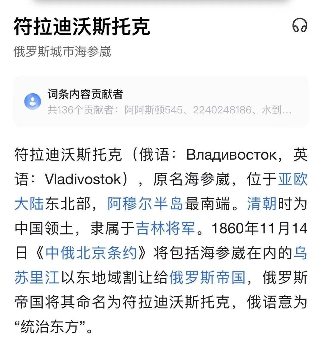 “符拉迪沃斯托克”俄文意思就是“征服东方”,而海参崴原本则是中国固有领土,在清朝时被俄国掠夺。这些内容上一篇文章《报团参观海参崴大阅兵,支持要肢解我们的俄国学者,究竟谁是“奸”?》里已经讲过,不再重复说了,网上随便检索也是一大堆一大堆的,所以当这种现象真的出现,多少还是感到恶心的,究极恶心。恶心到我原本脑子跳出来一句形象贴切的比喻,都不想把它写出来让自己反胃的程度。领土和人民是任何一个国家的绝对底线,抢你领土,杀你人民,你去跟他合影跟他笑。更离谱是这种人反过来骂别人是“汉奸”,这个世界是真疯了。