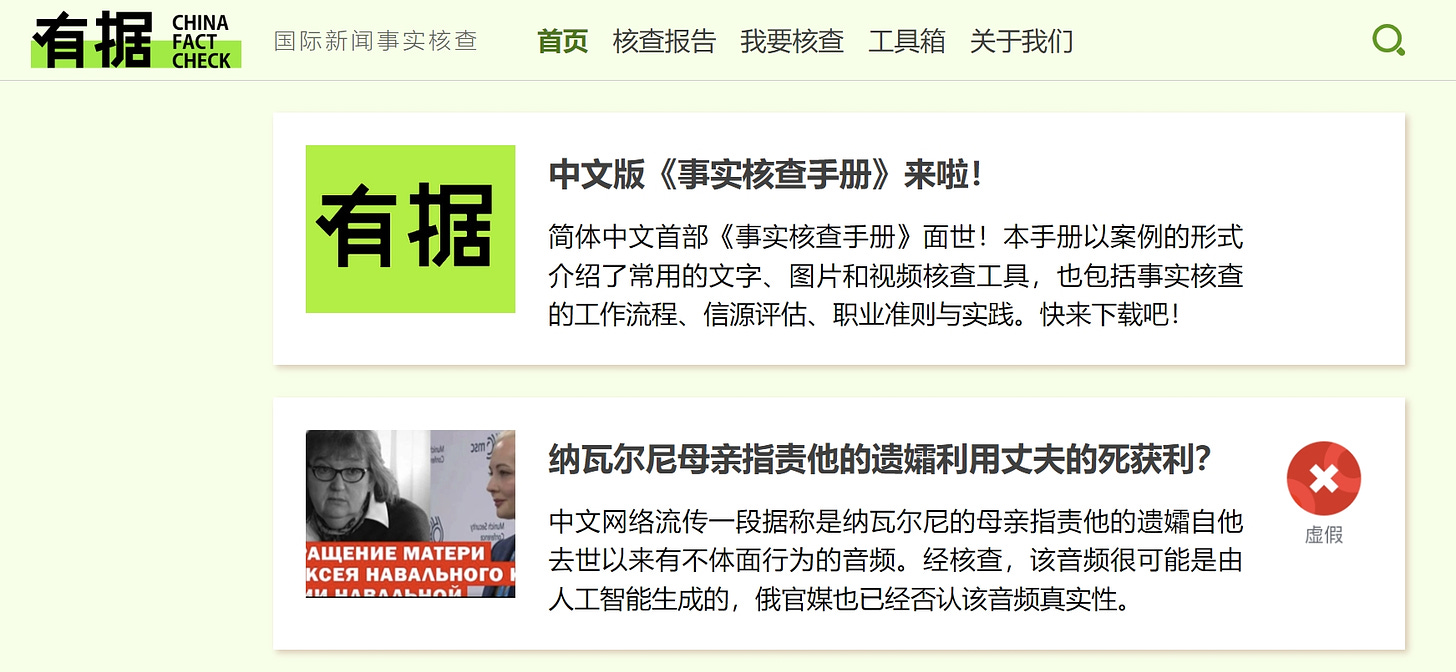 如果说普法是法治和法制的竞争,那么核查就是事实和失实信息的赛跑。新冠疫情期间,大量错假信息和阴谋论在网络上病毒式疯传,2020年2月,“有据核查”应运而生。创始人魏星2001年进入新闻业,先后供职于《东方早报》、《Sixth Tone》、梨视频等媒体。作为中国首个独立的事实核查计划,“有据”这样描述自己的愿景:“要形成理性、开放、包容的世界观,不能没有准确的国际新闻报道和国际资讯”。