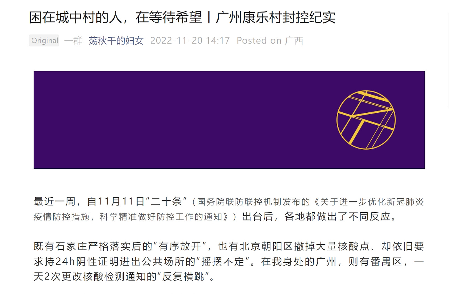 已被删的《广州康乐村封控纪实》网络存档