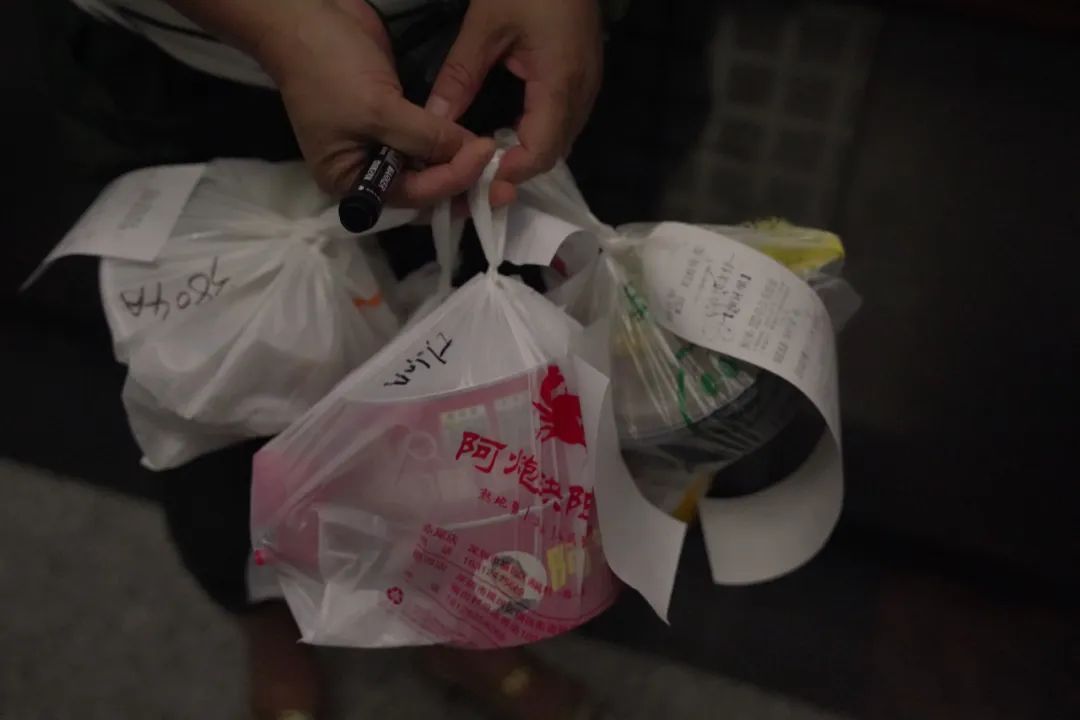 在一群快步移动的跑楼阿姨中间,谢明霞的努力很醒目。车流之中,她先预判出外卖骑手停车的位置,飞奔过去拦下对方,催促着问:几楼几楼?然后拽下餐盒,出示付款码,在餐袋上记下房间号,几个动作一气呵成。还植入一点广告,指着嘴边的黑痣说,“阿姨这个是独一无二的”,许多骑手听完就笑,记住了她。