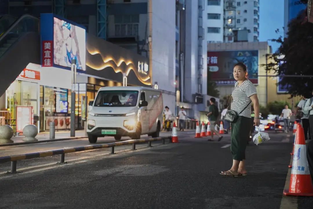 在赛格广场,谢明霞已经找到了生存的缝隙。找个隐密的柜子把水壶和雨伞一塞,送餐就能轻装上阵;夏天闷热,她知道马路上有一扇门,既不耽误接单,还能透过门缝吹空调。
