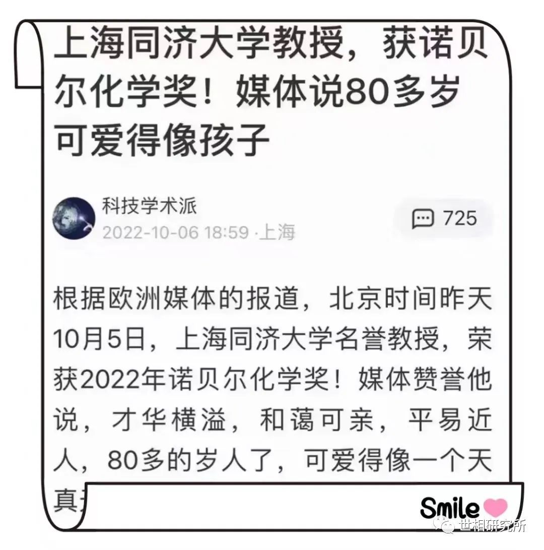 接着,同济大学火速宣布,诺奖的化学奖得主是他们的名誉教授。