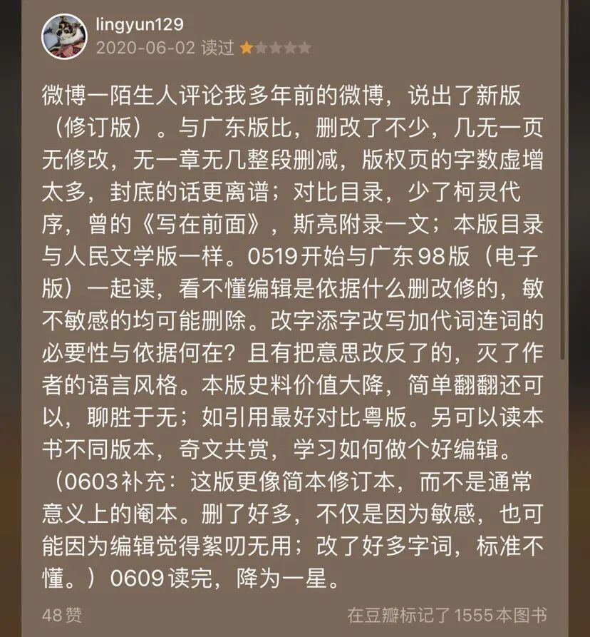 同一种作品,后出的删减更厉害,好像成为趋势、现象。这自然不是一概否定后出的新版,有的作品后出虽然无法避免删减,还是在做加法(比如增加内容)。
