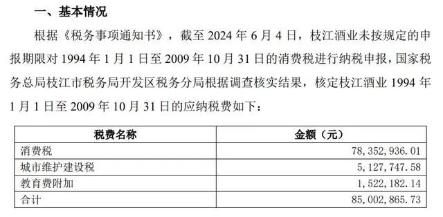 近日,上市公司维维股份(600300)发布公告称,收到税务部门发出的通知,将为原控股子公司枝江酒业补税最低 8500 万元(滞纳金金额尚不能确定)。