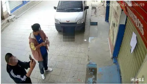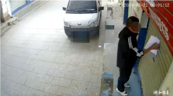 律师出示某母婴店(原阮双全注册经营地址,2019年阮双全因病治疗且租房到期后,别人开设某母婴店)监控视频软件导出的今年5月29日、31日的监控视频画面截图,证明烟草局工作人员于2024年5月29日、31日清晨6时许,多次前往阮双全原经营地址张贴《收回烟草专卖许可证通知书》及送达回证,拍照后撕下,伪造2021年3月4日的送达过程。其中,烟草局工作人员今年5月31日清晨6时左右拍摄的照片,系烟草局方提供的卷内送达照片。