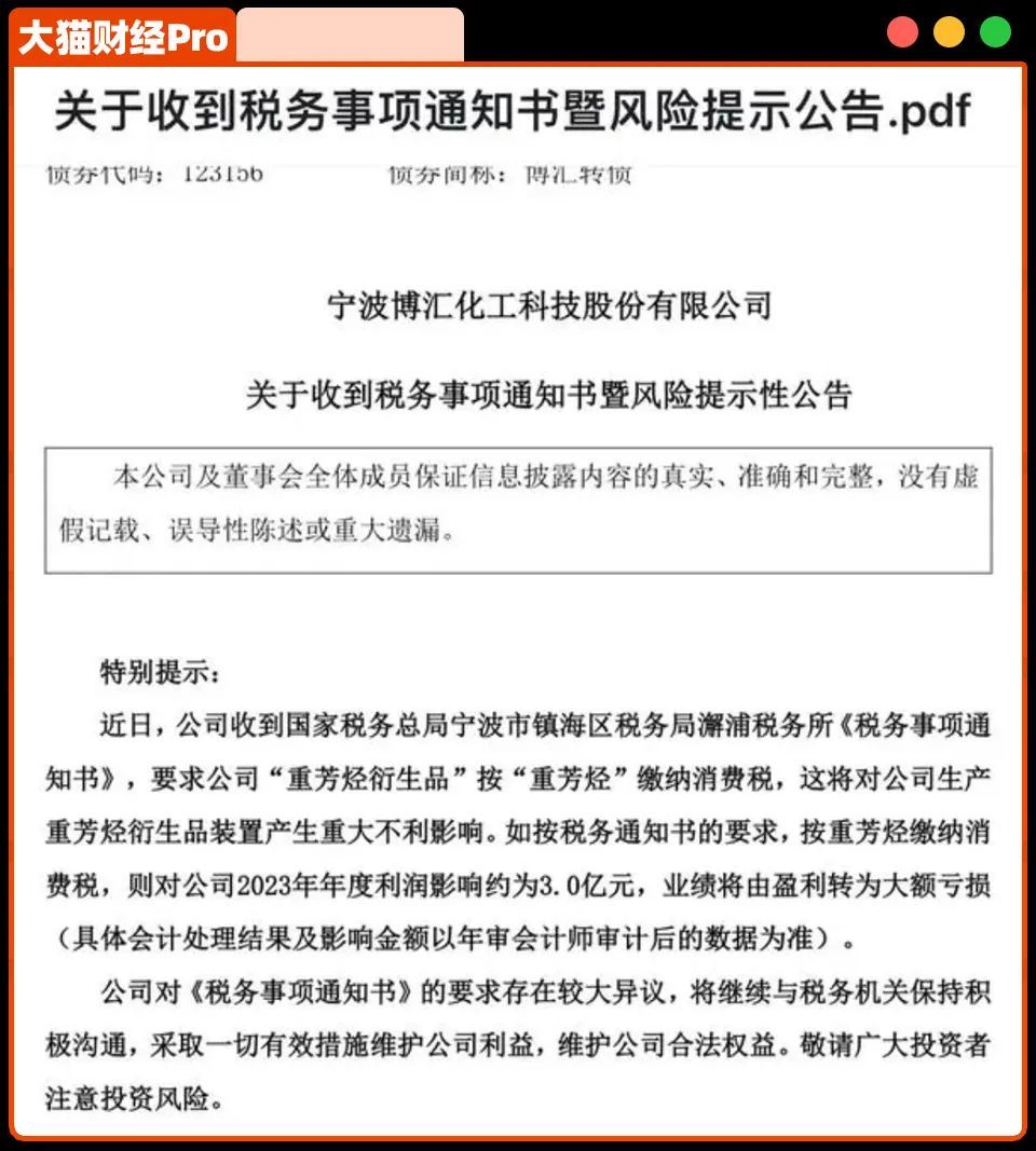 宁波博汇化工3月份收到要求补税5亿元的通知,最近直接宣布停产了。