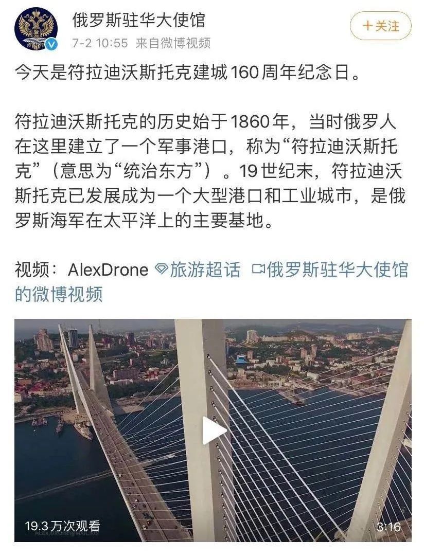 1860年,腐朽无能的清政府与沙俄帝国签订丧权辱国的《中俄北京条约》,割让了包括海参崴在内东北地区超过100万平方公里国土的主权。沙俄将海参崴重新命名为符拉迪沃斯托克,意为“统治东方”。