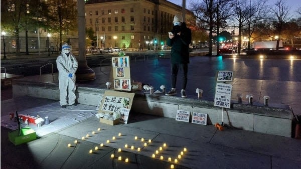 2023年11月25日,在美国首府华盛顿纪念白纸运动现场。 (RFA)
