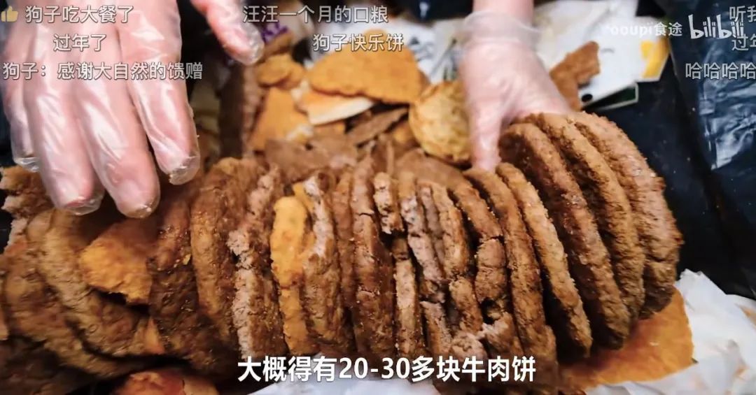 还有两次,Yooupi蹲守快餐店,捡到大量当天没有卖出去的牛肉饼,以及一些没开封的无人领取的外卖。
