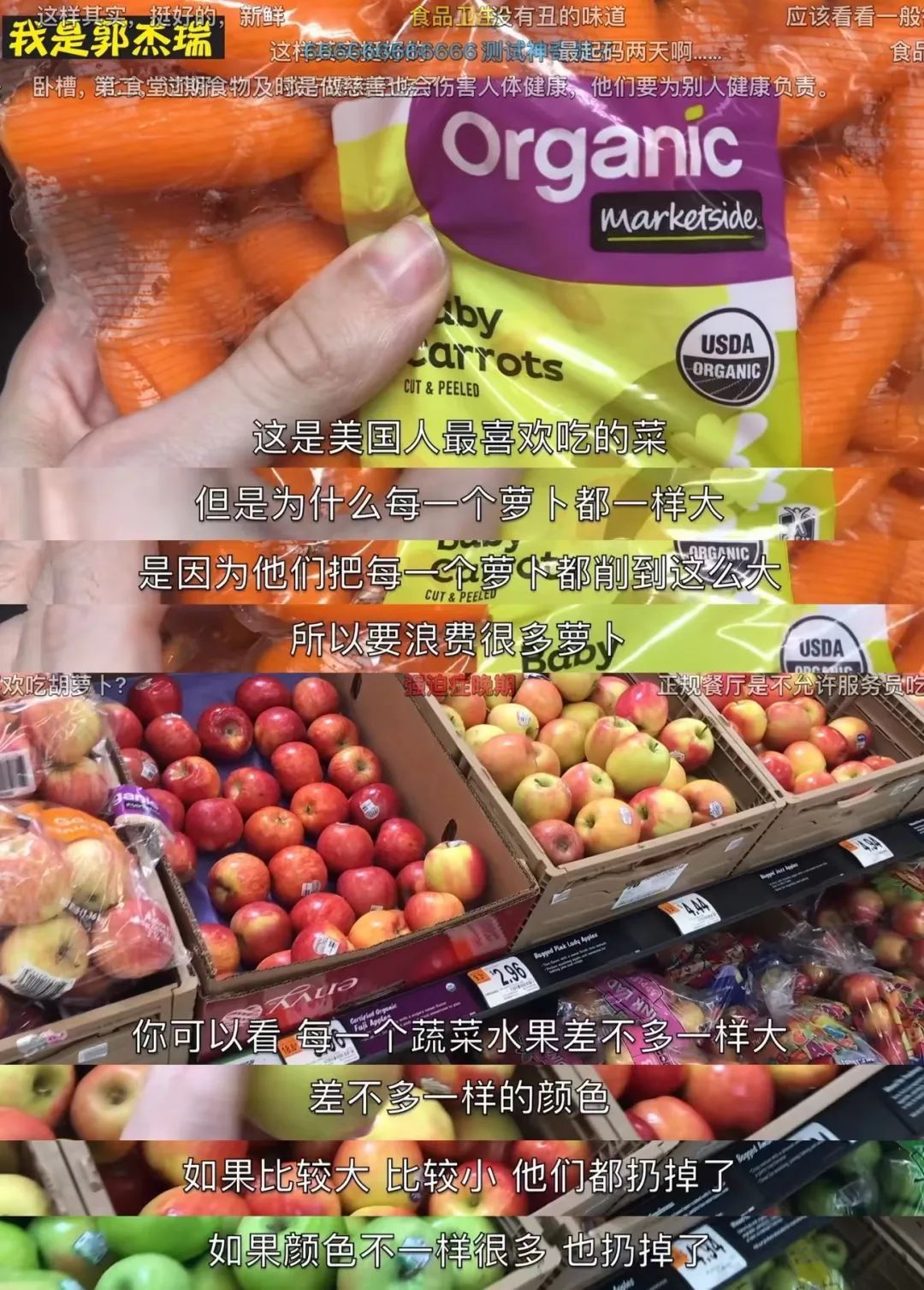 而那些生食,比如瓜果蔬菜类也都是经过筛选上架的。一款美国人很爱吃的小胡萝卜,并非品种不同,而是常规胡萝卜被削成了特定大小装袋售卖。