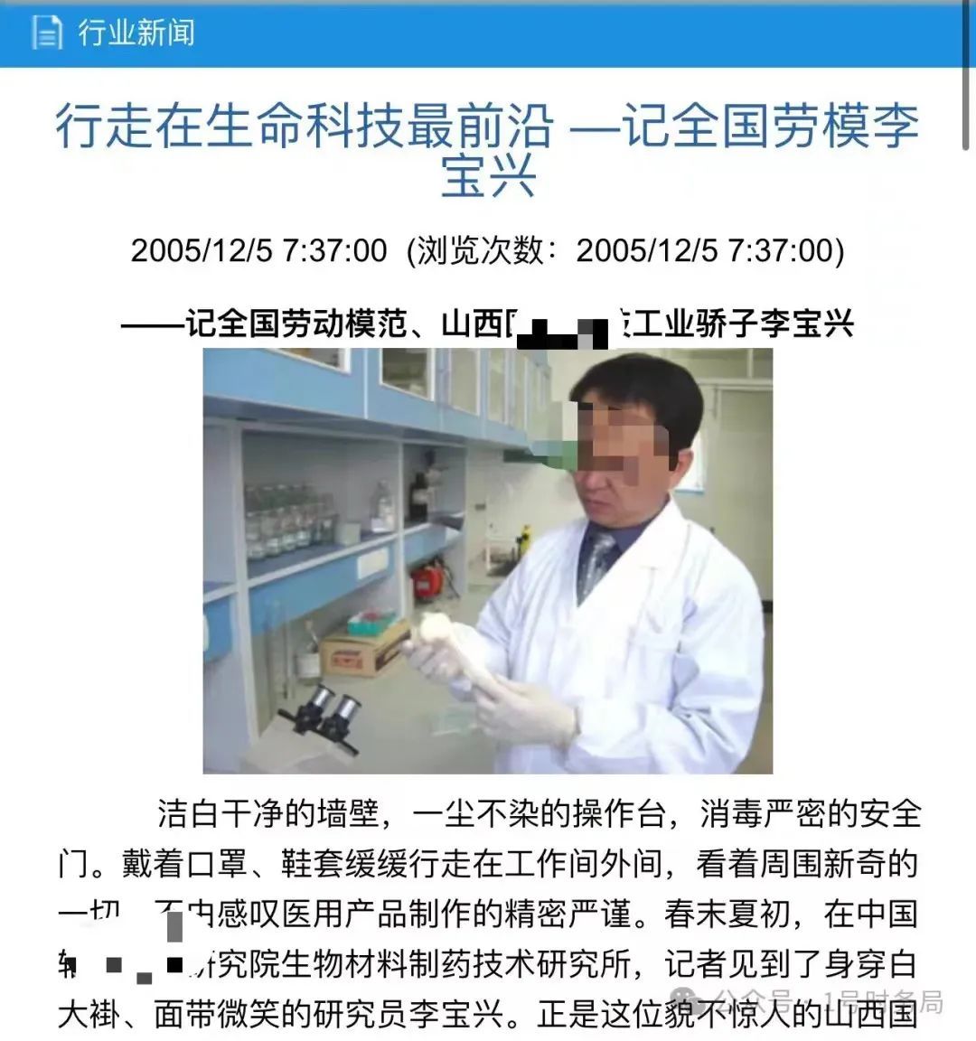 山西奥瑞公司实际控制人李某兴原为某国家级科研单位领导干部,并曾获评全国劳动模范。