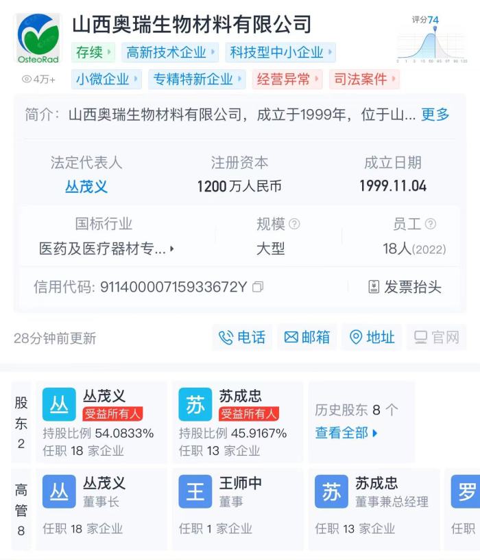 那么,此次涉案的核心企业山西奥瑞公司等公司又是什么背景?其所生产的“同种异体骨植入性材料”产品具体又是什么?而根据涉案核心人员,山西奥瑞的实际运营人李宝兴此前文章显示,山西省医用组织库与山西奥瑞存在解密合作关系,其是否也与此案存在关联?