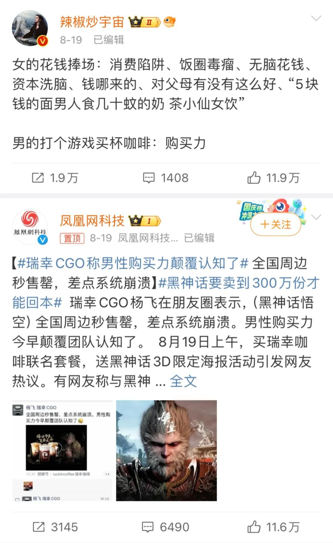 《神话:黑悟空》游戏制作人冯骥,2020年在微博上“勃起式”宣传。