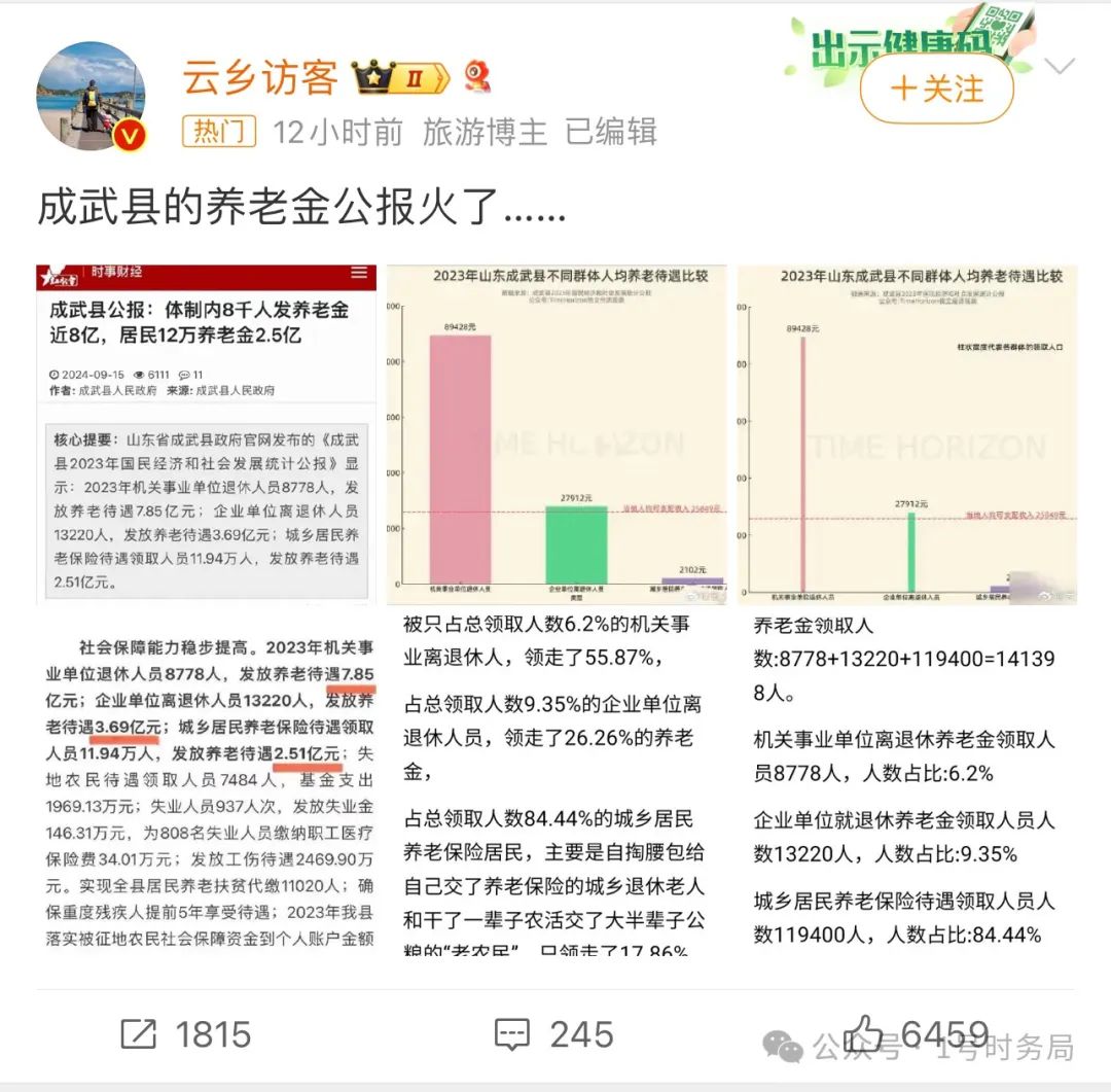 相关阅读:【异闻观止】成武县公报:体制内8千人发养老金近8亿,居民12万养老金2.5亿