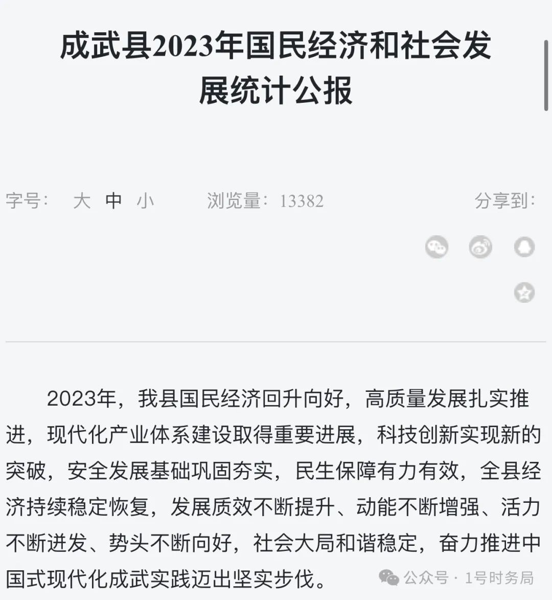 几天前,山东省成武县发布了“2023年国民经济和社会发展统计公报”。