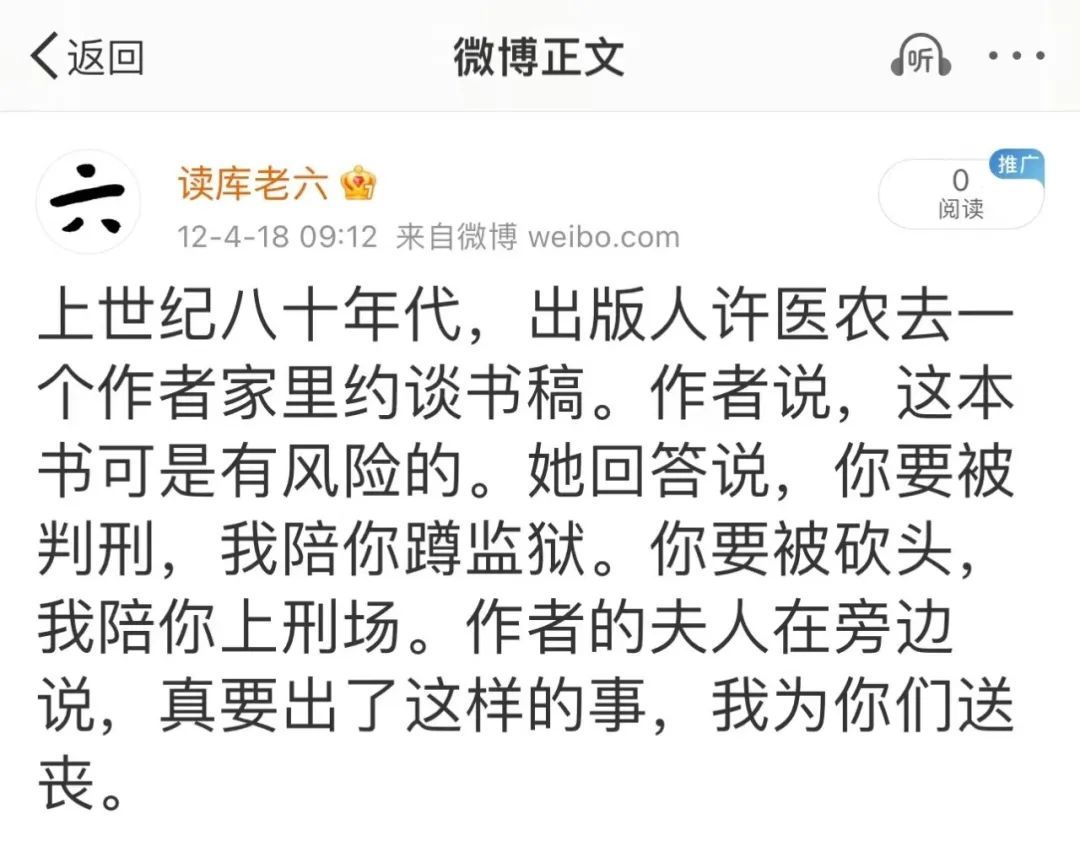 更受震动的是看到同为出版人的老六以前发的微博: