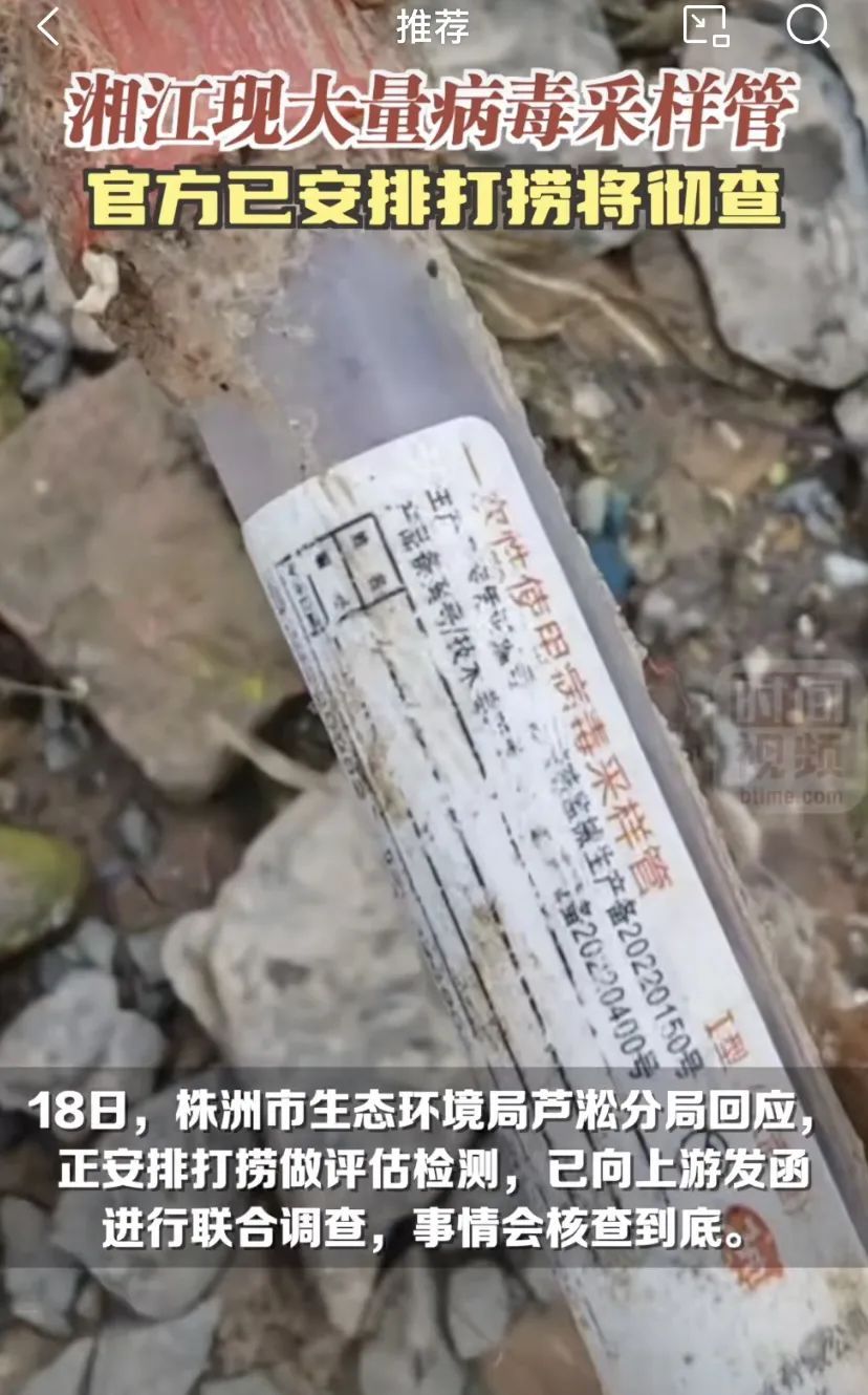 近日,市民在湖南株洲的湘江岸边发现大量病毒采样管,一度引发湘江流域市民的恐慌: