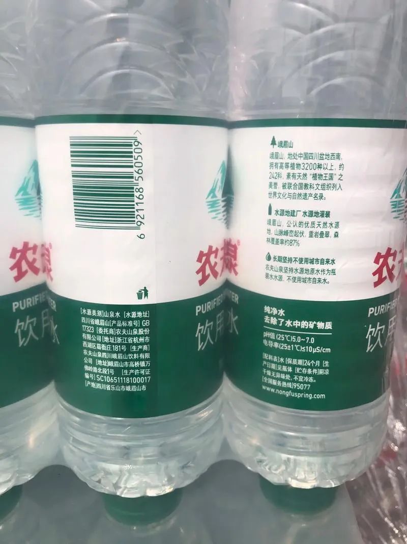 然而,我在2024年11月21日购买农夫山泉绿瓶装纯净水产品时发现:
