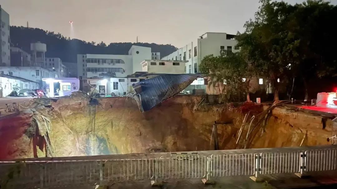 12月5日凌晨,深圳市宝安区应急管理局发布情况通报称,12月4日23时许,位于宝安区航程接到洲石路的深江铁路5标段施工现场突发地面坍塌,接施工单位报告,13名现场作业人员失联。根据央视新闻发布的现场图片,坍塌位置的坑洞宽度横跨洲石路的7个车道,一直延伸到宝州工业区内的楼房下,坑深数十米,裸露出砖红色土,坑内积有水土混合的泥浆。