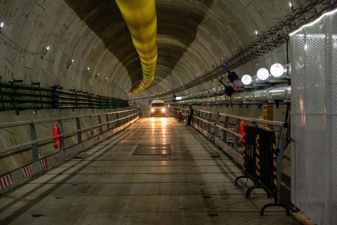广州,深江铁路珠江口隧道工程建设有序推进,施工人员现场加紧作业。(图|视觉中国)