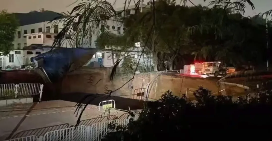 2024年12月4日23时许,广东深圳,位于宝安区航城街道洲石路的深江铁路5标段施工现场发生地面坍塌。