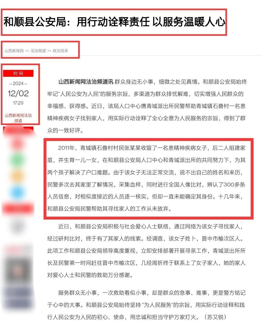 网友考古到12月2日山西和顺县公安局的官方通稿。来源:网络截图