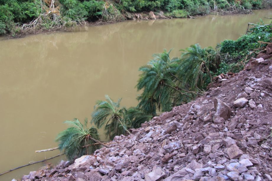 澜沧江支流罗梭江回龙山水电站淹没区正在被“清库”毁灭的刺葵群落。©顾伯健