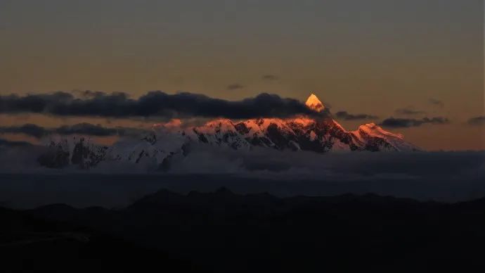 山就这样寂静而又肃穆的矗立着,脚下的无数条冰川冲入漆黑的山谷,化作永不间断的潮汐,置身其中,仿佛人就是沧海中的一颗沙砾。