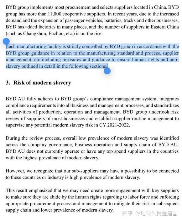另外,比亚迪之前向澳大利亚,提交过一份反现代奴役报告,其中明确指出: