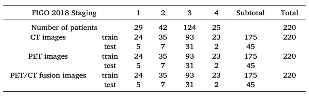 The first part retrospectively analyzed 72,602 slices of FDG-PET/CT scans from 220 cervical cancer patients. Various preprocessing strategies were applied to enhance PET and CT images, including edge detection, adaptive ROI localization, and cross-modal image