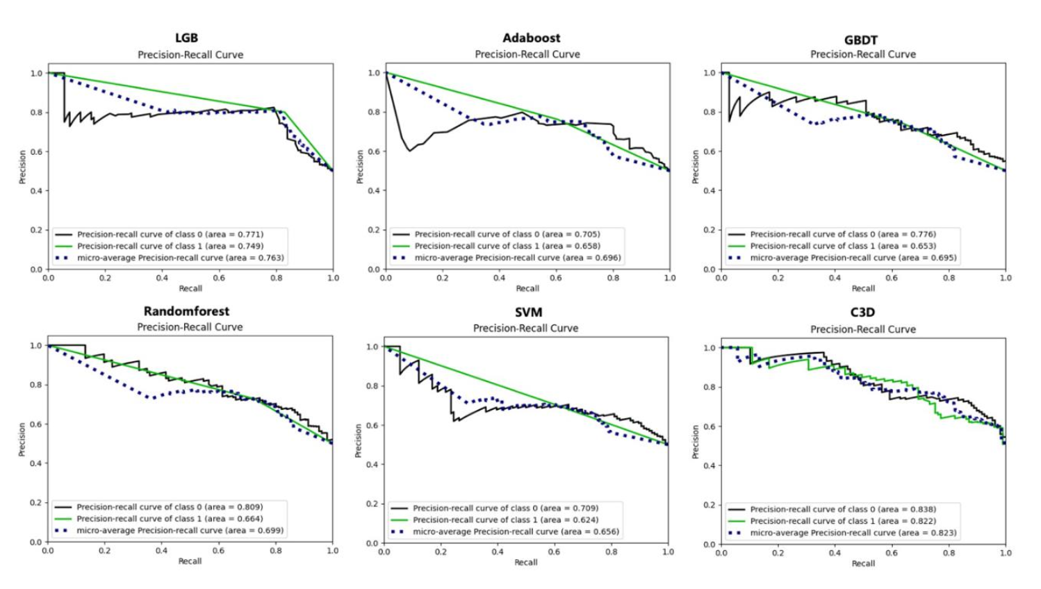 第一部分的基于跨模态融合的肿瘤检测实验证明,PET-CT 自适应区域特征融合图像显著提高了宫颈癌病变区域检测的准确性。相比使用CT 或PET 单模态图像以及其他融合方法生成的多模态图像作为网络输入,目标检测的平均精确度分别提高了 6.06%和 8.9%,且消除了一些假阳性结果。上述测试结果在使用不同的目标检测模型的情况下保持一致,这表明自适应跨模态融合方法有良好的通用性,可以泛化应用于各种目标检测模型的预处理阶段。第二部分基于特征转换的跨模态病例分类实验证明,跨模态融合数据显著提高了乳腺癌骨转移诊断任务的性能。相较于单模态数据,跨模态融合数据的平均准确率和AUC分别提高了7.9%和8.5%,观察 ROC 曲线和 PR 曲线的形状和面积也具有相同的实验结论:在不同的分类模型中,使用基于特征转换的跨模态数据,相比单模态数据,对于骨转移病例的分类性能更为优越。而相较于基于 C3D 的前融合分类模型,基于特征转换的后融合策略在分类任务方面的性能更优。