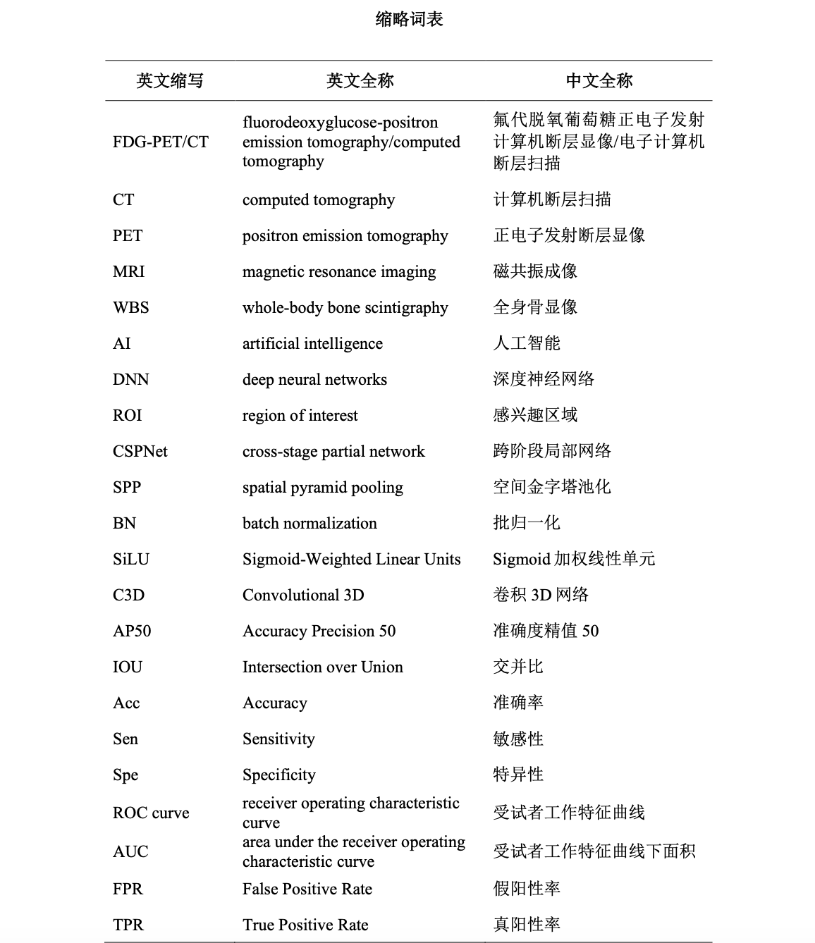 [21] Lin Q, Li T, Cao C, Cao Y, Man Z, Wang H. Deep learning based automated diagnosis of bone metastases with SPECT thoracic bone images[J] . Scientific Reports, 2021, 11(1): 4223.