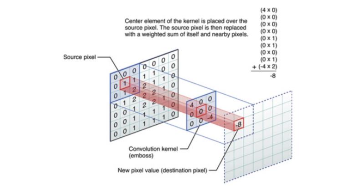 Fig. 1: Example of a filter (kernel) convolution. Note the new pixel value shown in the figure has not been weighted by the number of windows in the filter.