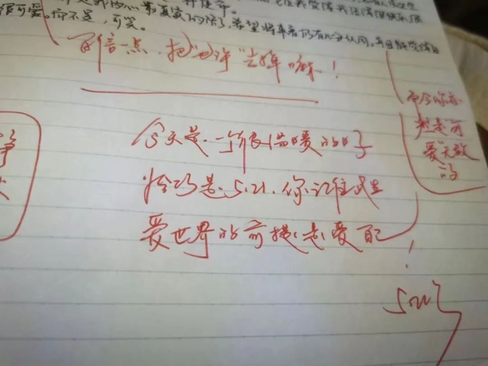 陈勇批注的评语:今天是一个很温暖的日子,恰巧是5·21,你记住此生爱世界的前提是爱自己!/受访者供图