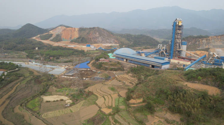 梯田环绕中的良田水泥厂以及正在施工的应急池现场(图_晶朵/摄)