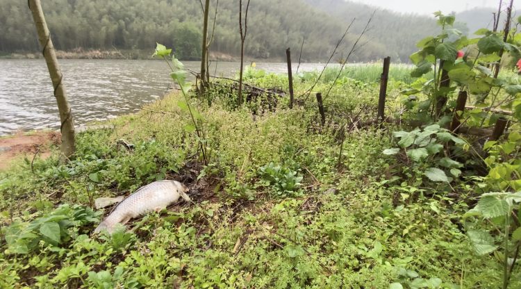 江口村江边,附近钓友反映,投硫之后死了不少江鱼。(图_晶朵/摄)