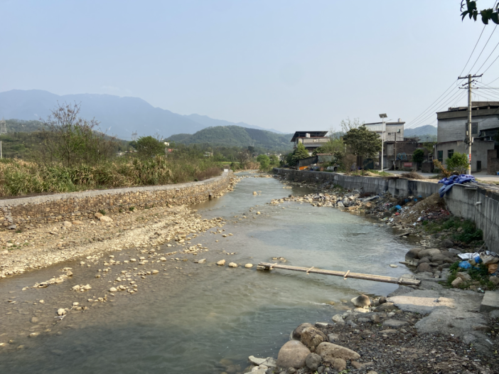 在两河交汇处,一道雍水坝高高筑起,一条一米宽的灌渠从水坝引水往下,旁边标识写着“2019年度高标准农田建设项目QG43灌渠”。两岸油菜花、桃花盛开,不时有村民在沿河劳作,对于他们而言,谷雨之后,便要开始种稻子了。