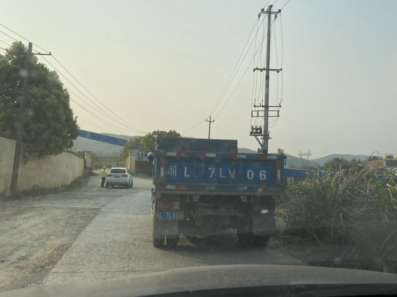 3月26日中午,水瓶纪元抵达郴州市苏仙区良田镇麦田村,良田水泥厂就建在村里的耕地上。在水泥厂门口,不少衣服上印有“特勤”字样的人员在值班。这天有4级大风,灰尘漫天,老旧的混凝土搅拌架轰鸣作响,沙石的粗粝感迎面扑来。水泥制造环节中,添加尾矿是行业公认的做法。在这片水网交织的山野农田中,水泥厂高大的蓝白色窑炉拔地而起,映衬得周边农房微小而零散。