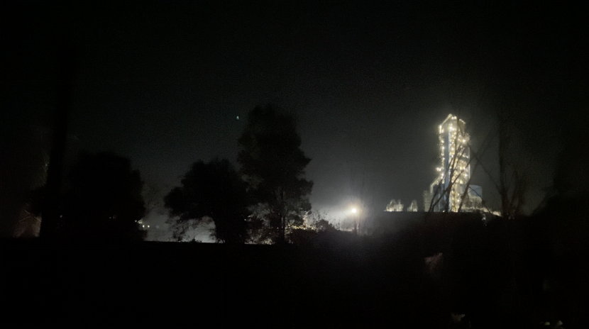 小镇多个街道没有路灯,夜幕降临后显得一片漆黑。只有镇外日产5000吨熟料的高大窑炉在夜色中依旧明亮。