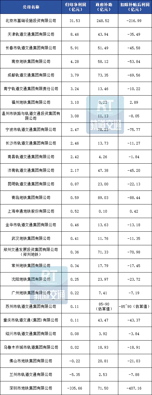 数据显示,仅有12家地铁归母净利润超过了1亿元,部分地区陷入亏损。