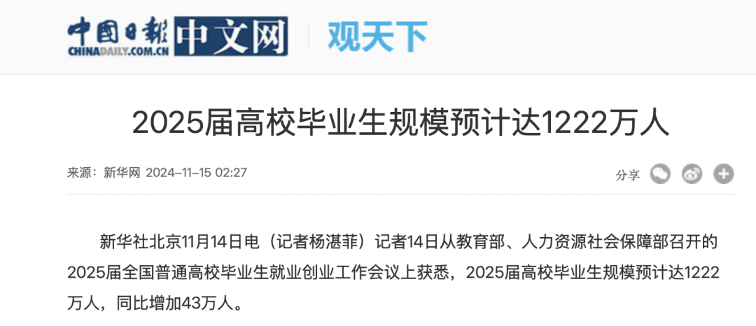 刚去考证的数据,今年再过一两个月,将迎来1200万毕业生和1400万高考生,明年这个数字会更高。