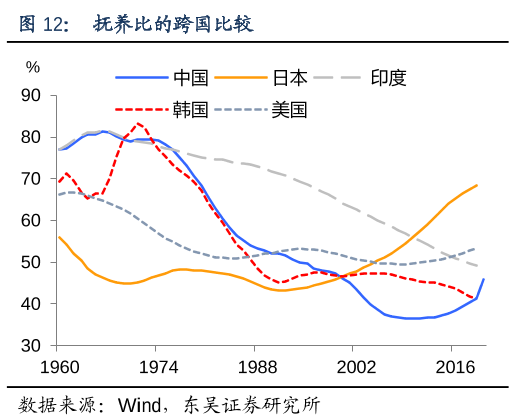 抚养比可拆分为2部分,少儿抚养比和老年抚养比。