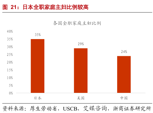 在日本,全职太太是比较常见的现象,比例占到35%,美国29%,中国只有24%。从这个角度看,美国、日本一个人工作养家的难度,是远小于国内的。