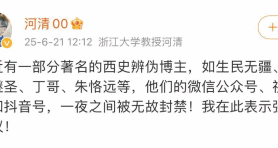 面对这样的状况,伪史圈是哀鸿遍野,以黄河清教授为首,纷纷发了这样的微博。