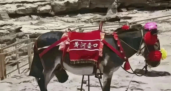 那头套着波纹管的驴,沉默矗立壶口瀑布前,犹如一尊活体雕塑。它无言的目光掠过匆匆游人,内心坦荡。