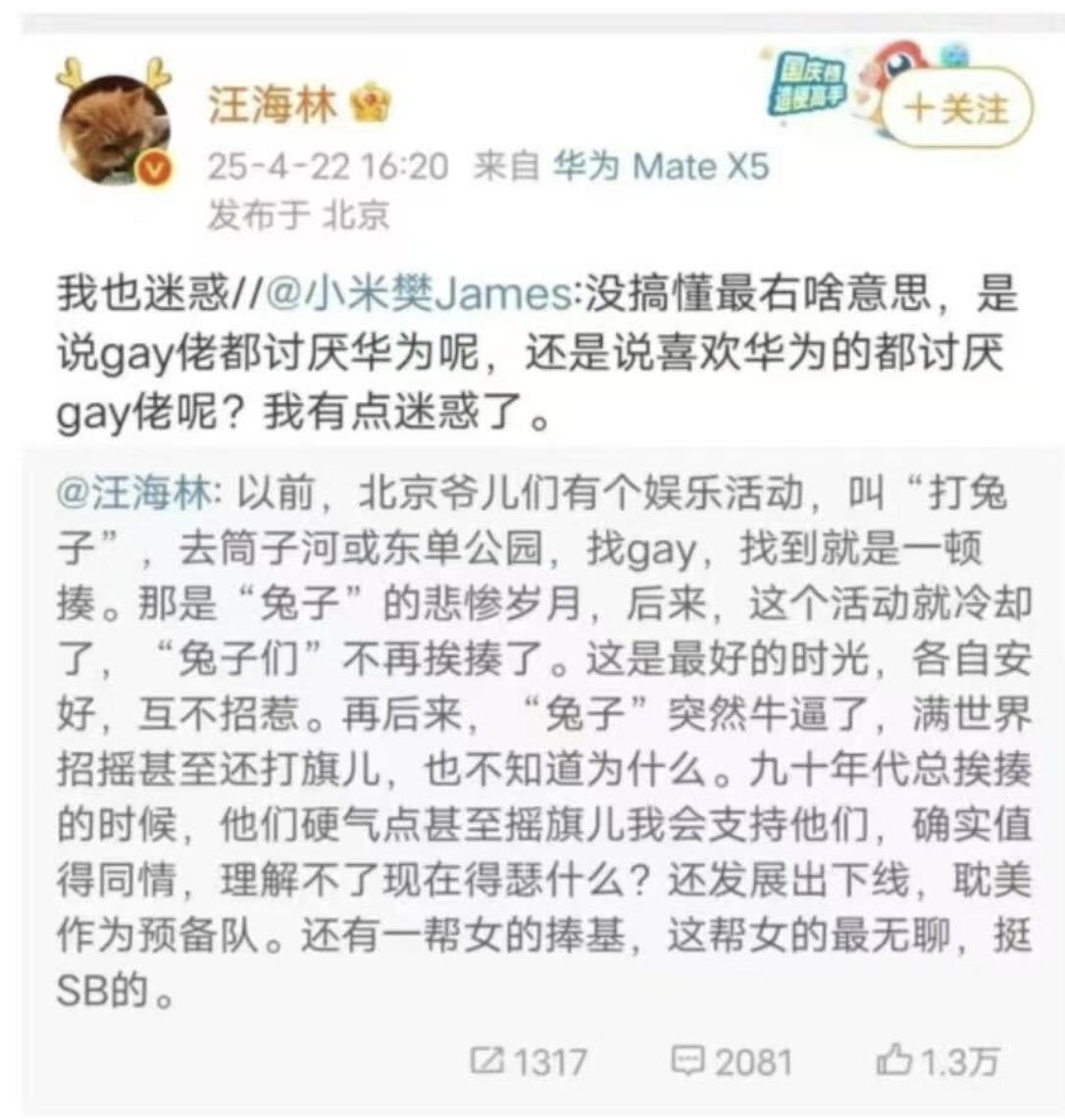 也曾写过一篇文章对其进行驳斥:霸凌、殴打无辜的人,多年来不以为耻,反而洋洋自得?回应汪海林的暴论。
