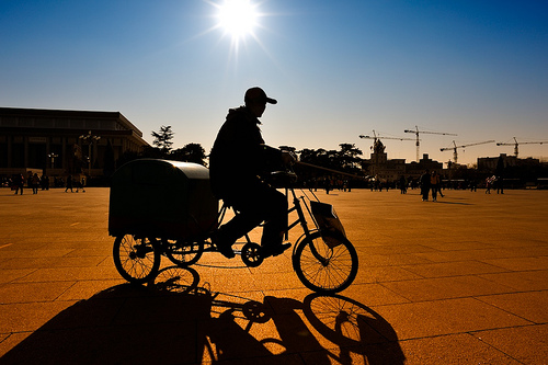 Photo: A rubbish cleaner on a bicycle in Tiananmen Square, by Ox Lee 2010年6月5日 A rubbish cleaner on a bicycle in Tiananmen Square, by Ox Lee 所在分类:Main Photo