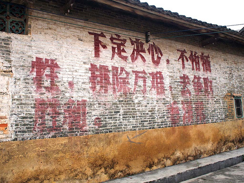 Photo: Be Resolute, Do Not Fear Sacrifice 2010年6月28日 Wall-side slogans in San Duo Li Village, by Rachel Elsa. 所在分类:Main Photo